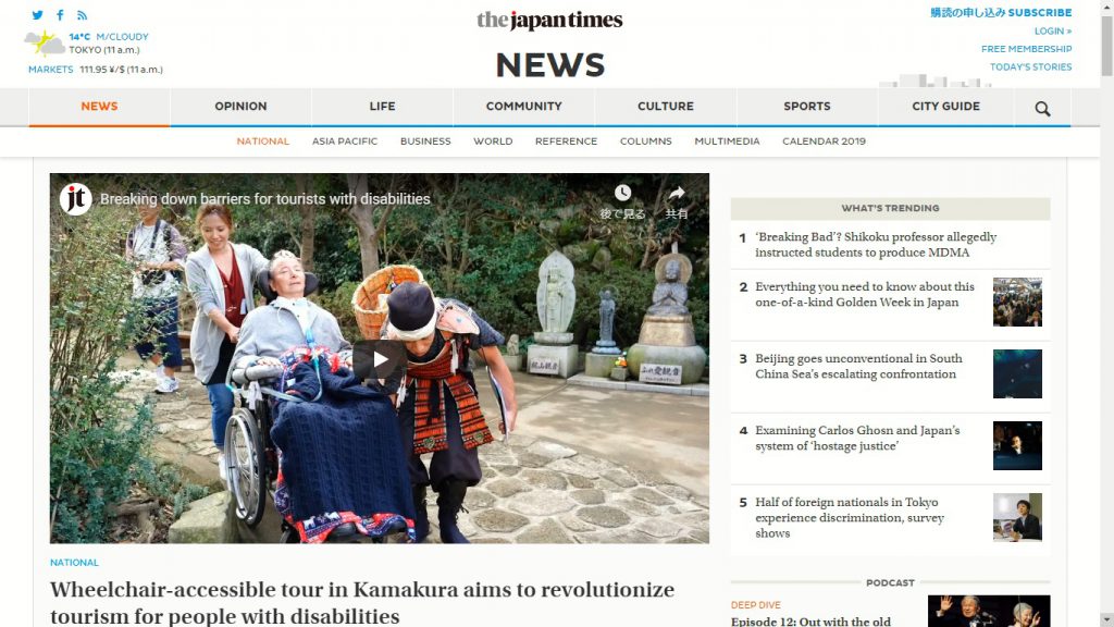https://www.japantimes.co.jp/news/2018/11/28/national/wheelchair-accessible-tour-kamakura-aims-revolutionize-tourism-people-disabilities Japan Times オンライン